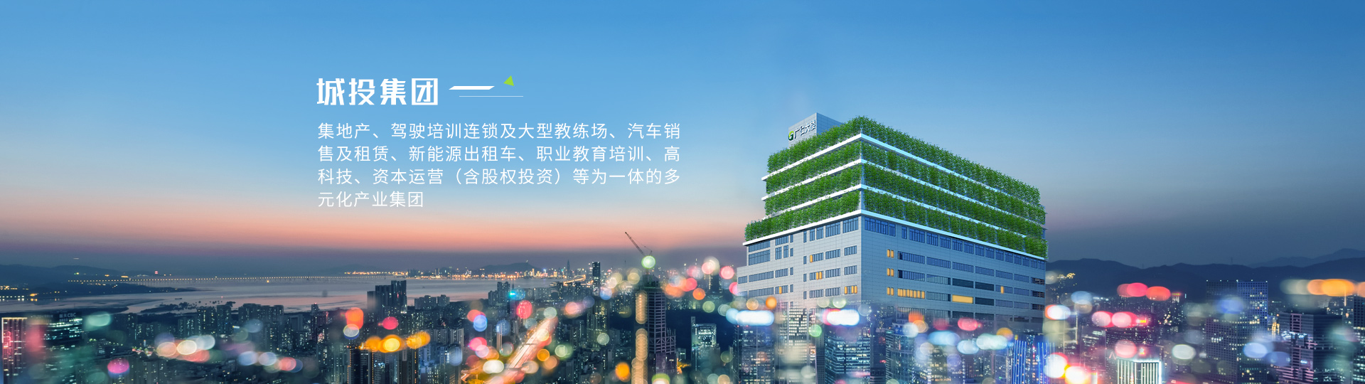 城投集團堅持“愛黨愛國、孝敬父母”的核心企業(yè)文化,主要業(yè)務為高科技、互聯(lián)網(wǎng)、基金投資、地產(chǎn)開發(fā)、職業(yè)教育培訓、駕駛培訓、汽車銷售及租賃、出租車運營等。